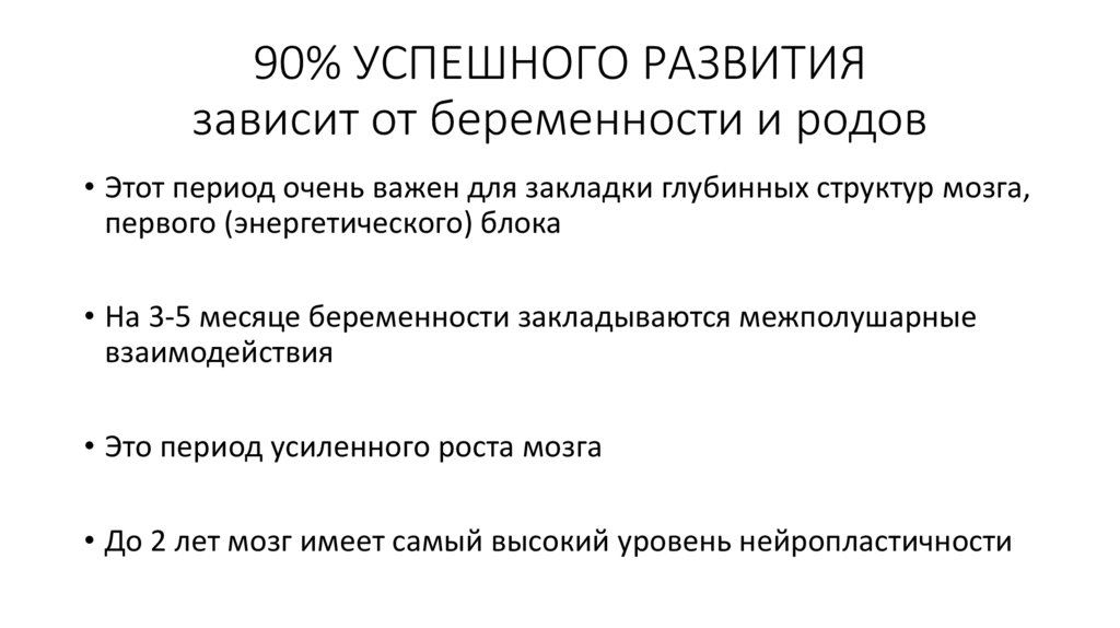 90% УСПЕШНОГО РАЗВИТИЯзависит от беременности и родов