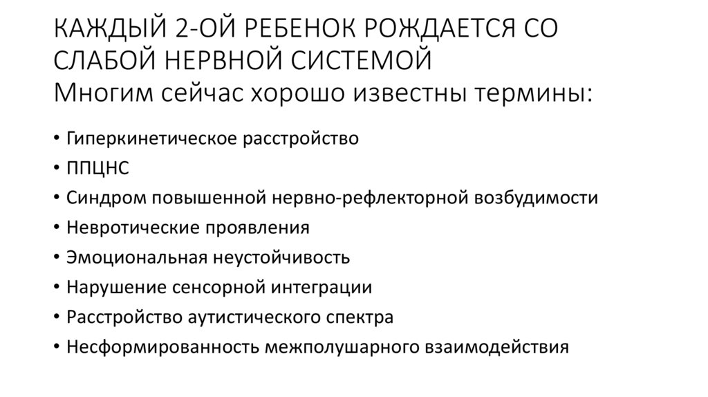 КАЖДЫЙ 2-ОЙ РЕБЕНОК РОЖДАЕТСЯ СОСЛАБОЙ НЕРВНОЙ СИСТЕМОЙ