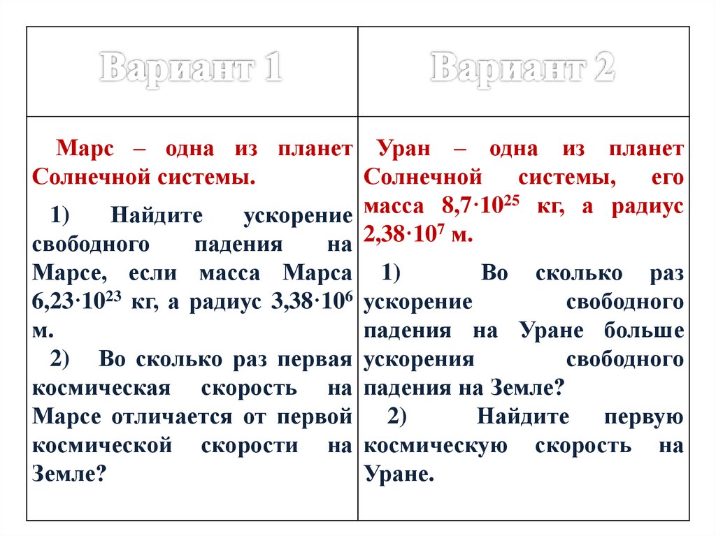 6,23·1023 кг, а радиус 3,38·106 ускорение