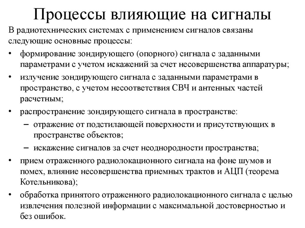 Процессы влияющие на сигналыВ радиотехнических системах с применением сигналов связаны