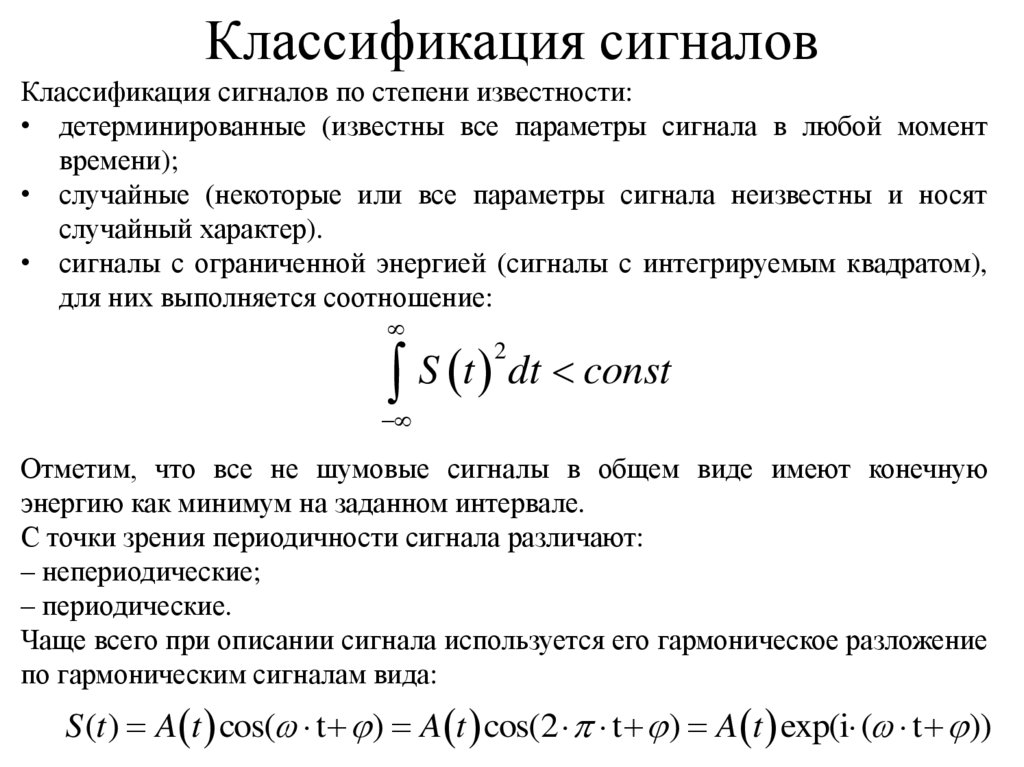 Классификация сигналовКлассификация сигналов по степени известности: