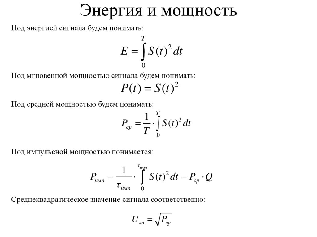 Энергия и мощностьПод энергией сигнала будем понимать: