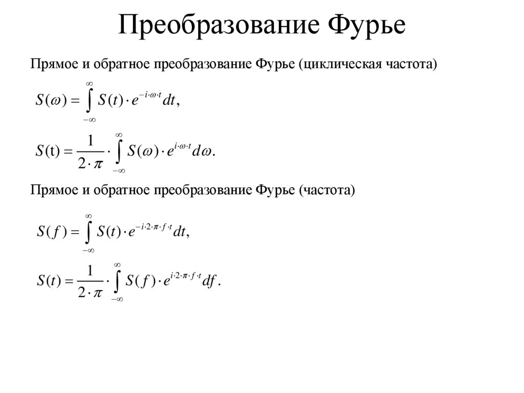 Преобразование ФурьеПрямое и обратное преобразование Фурье (циклическая частота)