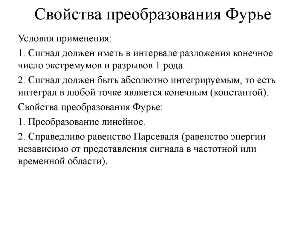 Свойства преобразования ФурьеУсловия применения: