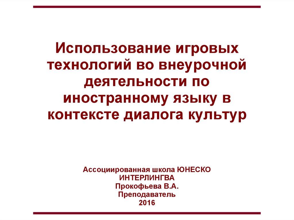 Использование игровых технологий во внеурочной деятельности по иностранному языку в контексте диалога культур