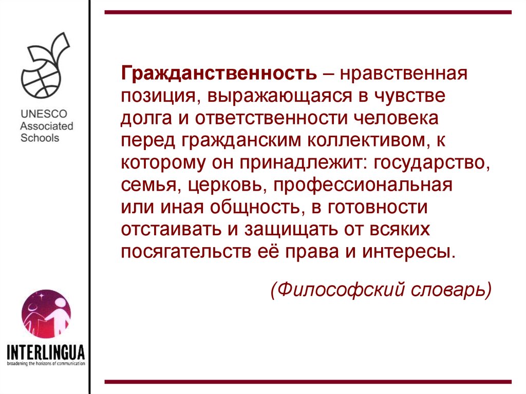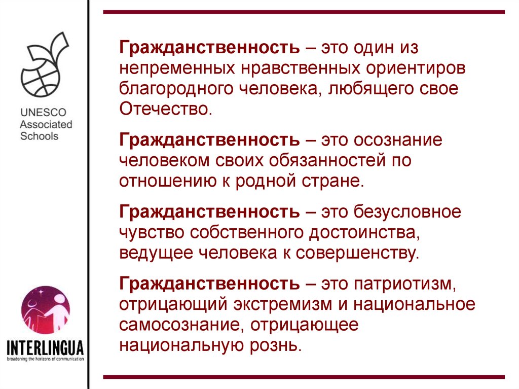 Гражданственность – нравственнаяпозиция, выражающаяся в чувстве