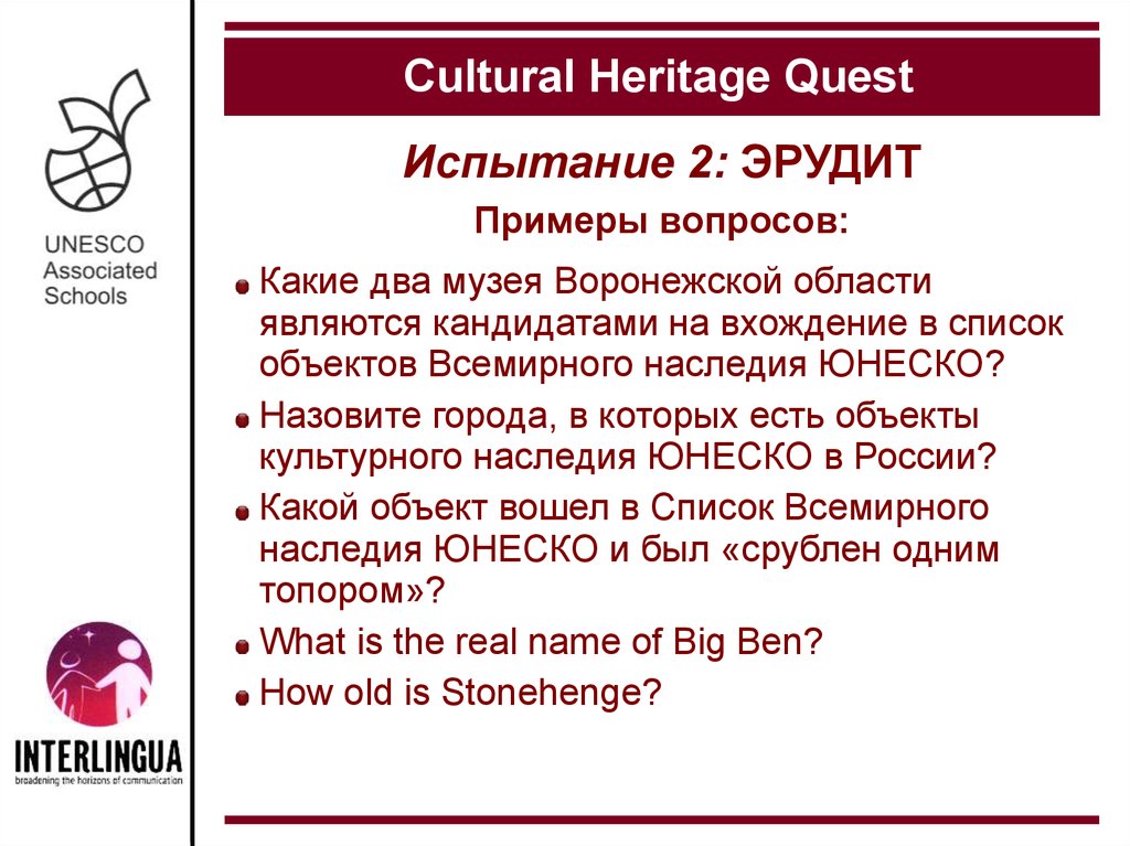 Cultural Heritage QuestИспытание 2: ЭРУДИТ