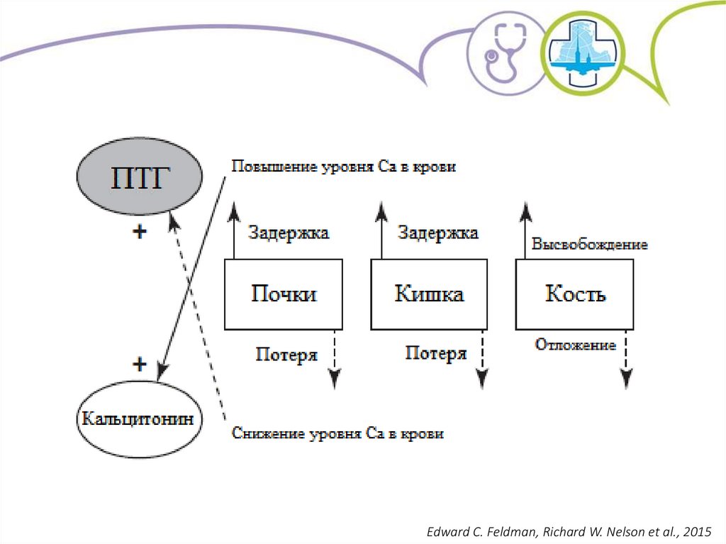 • экскреция Р и реабсорбция Са в почечных канальцах; при