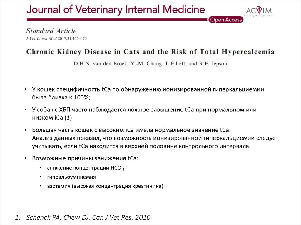 • У собак с ХБП часто наблюдается ложное завышение tCa при нормальном или