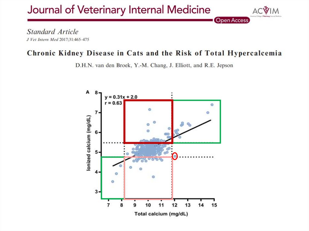 • Большая часть кошек с высоким iCa имела нормальное значение tCa.
