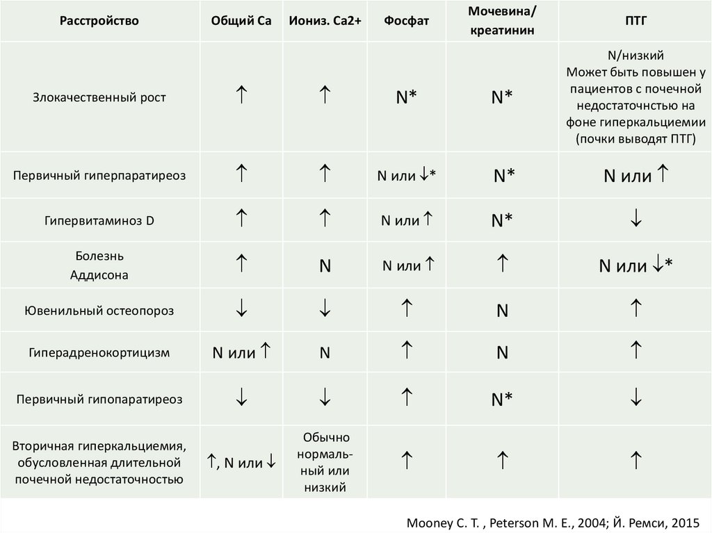 неоплазии повышаются концентрации Са и Р, а Са×Р часто