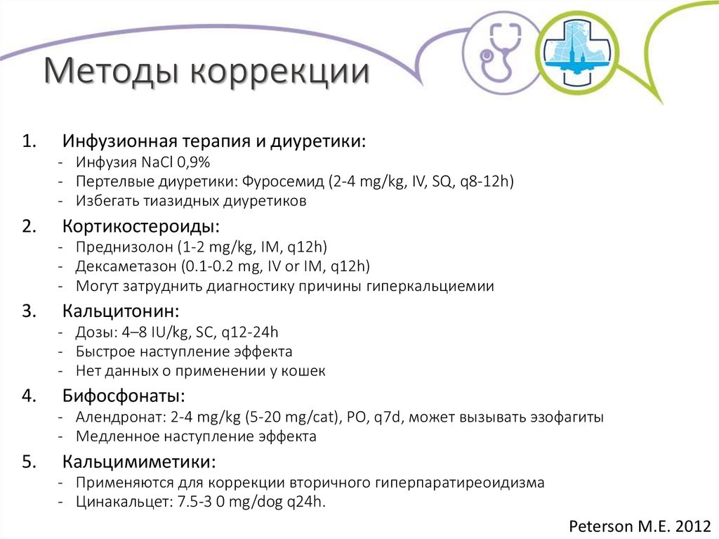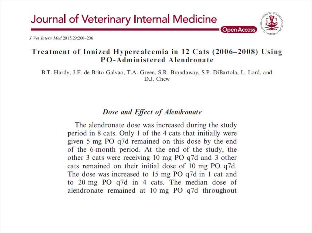 - Алендронат: 2-4 mg/kg (5-20 mg/cat), PO, q7d, может вызывать эзофагиты