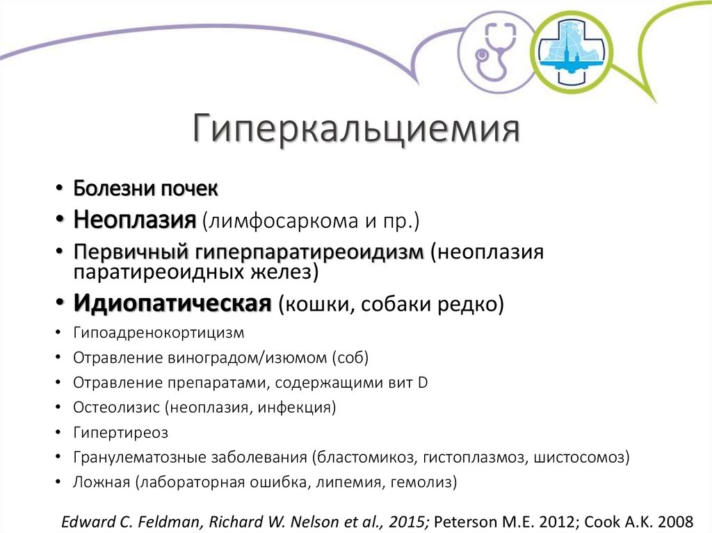 • гиперкальциемия была обнаружена у 11,5–21% кошек