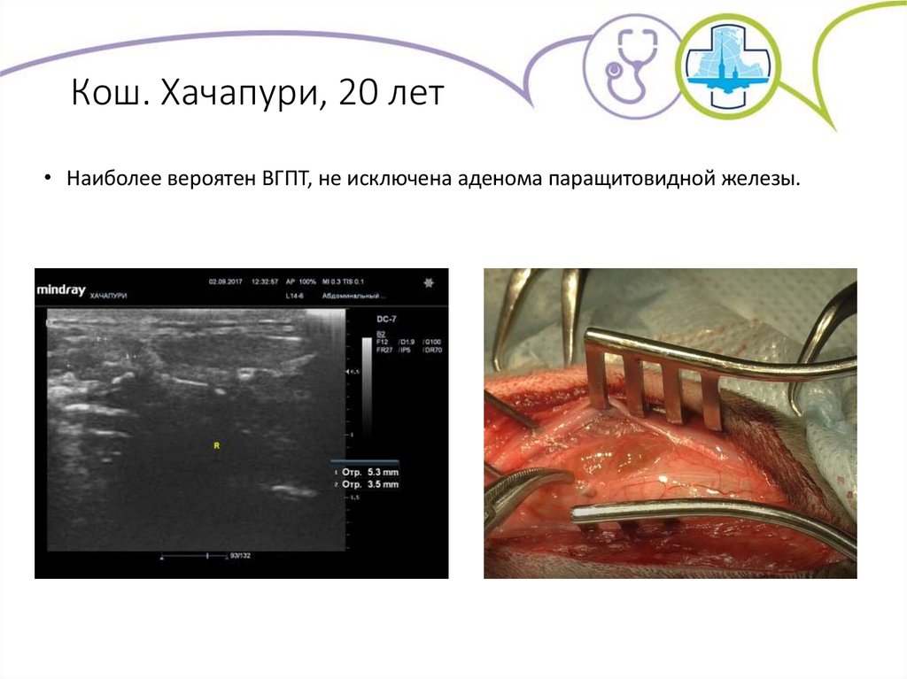 Кош. Хачапури, 20 лет• Наиболее вероятен ВГПТ, не исключена аденома паращитовидной железы.