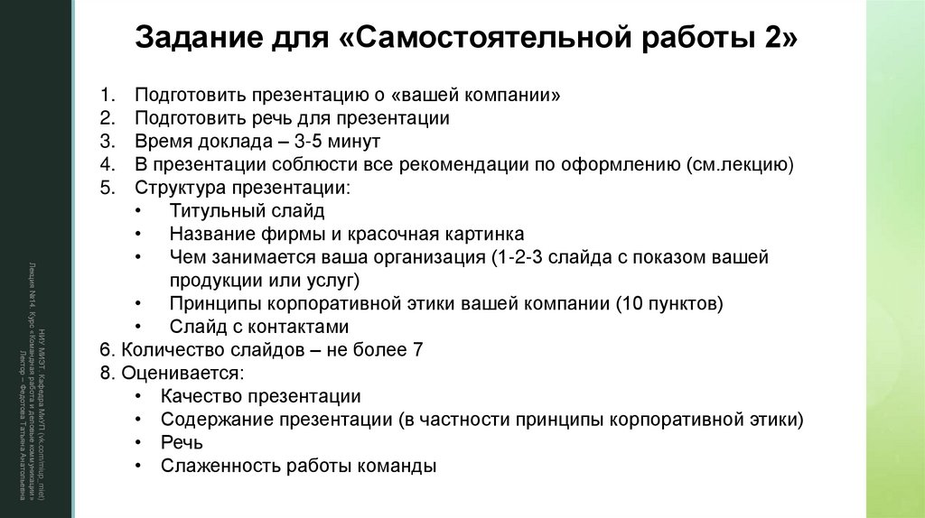 Лекция №14. Курс «Командная работа и деловые коммуникации»