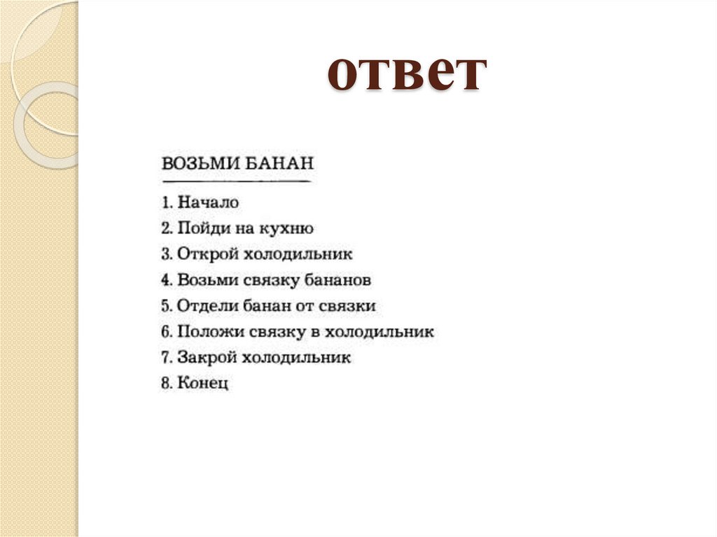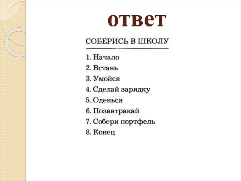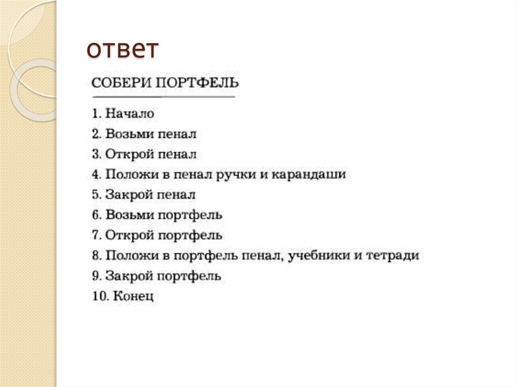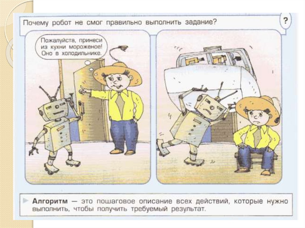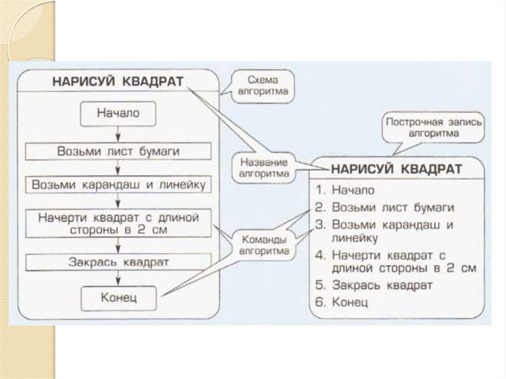 В информатике план действий называют алгоритмом.Алгоритм состоит из отдельных шагов – команд. Ни одну из