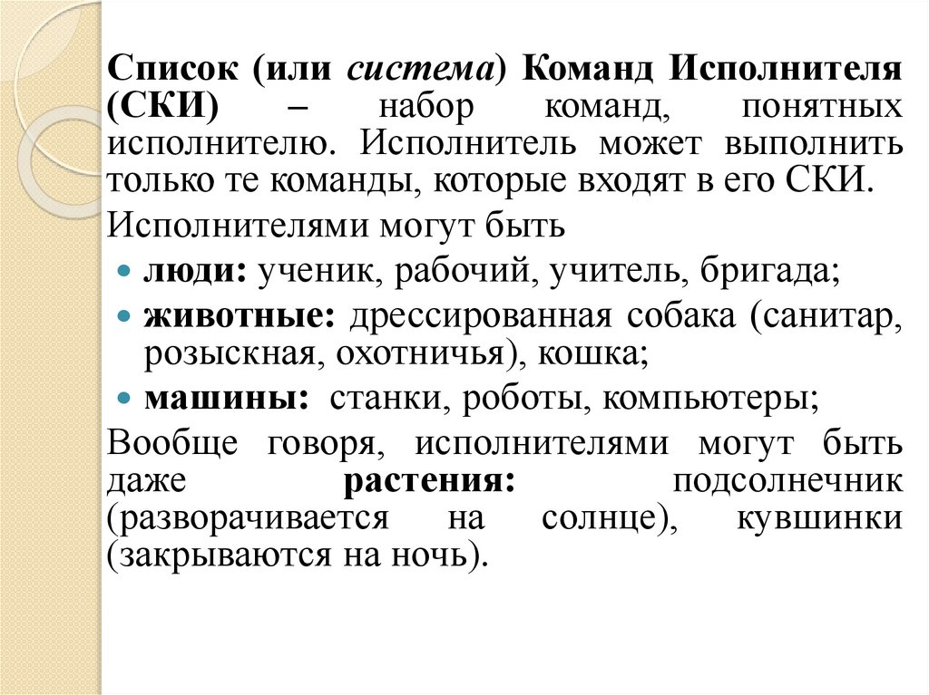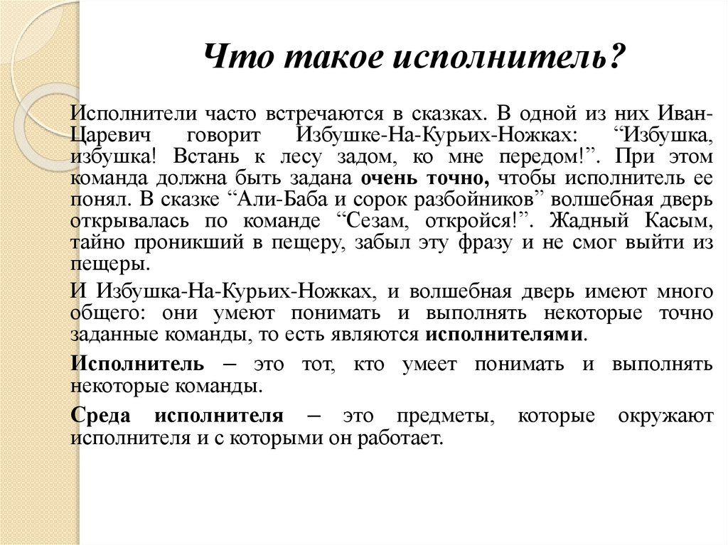 Исполнитель – это тот, кто умеет понимать и выполнять