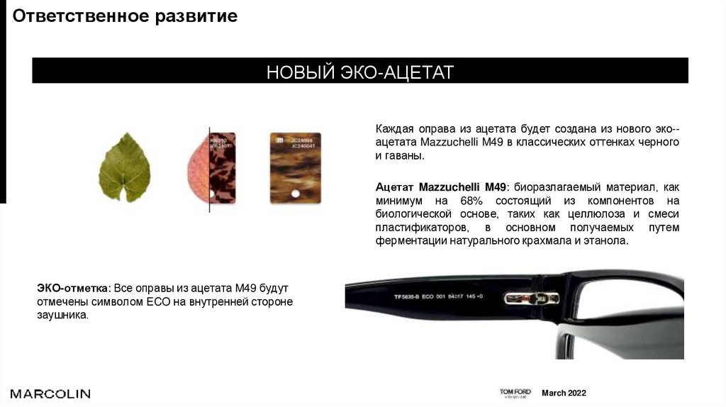 ЭКО-отметка: Все оправы из ацетата M49 будут