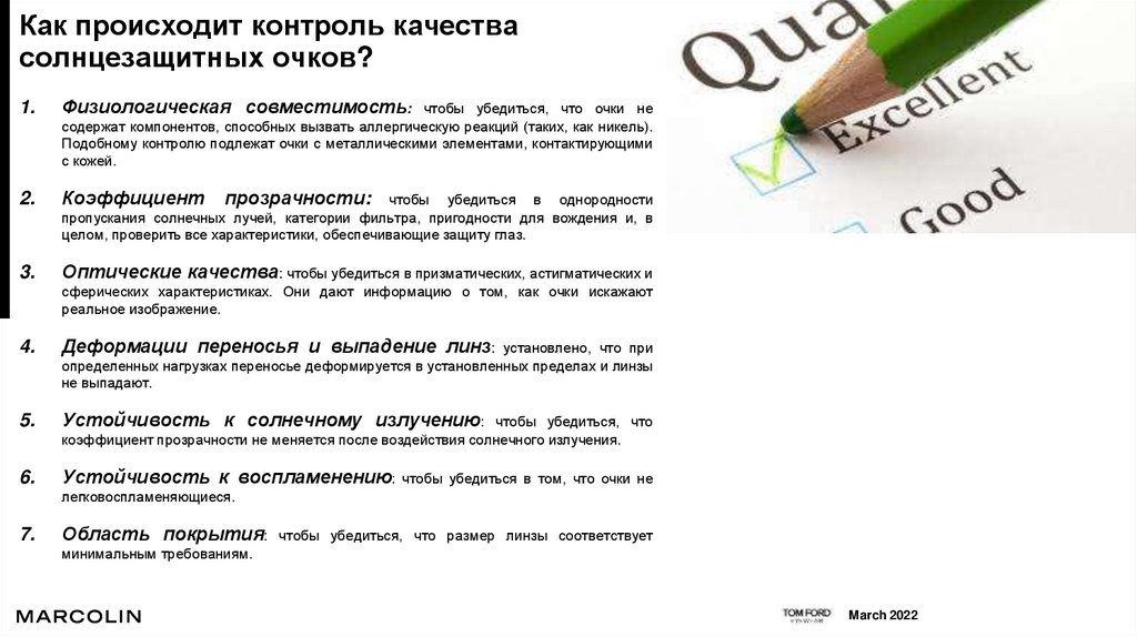целом, проверить все характеристики, обеспечивающие защиту глаз.