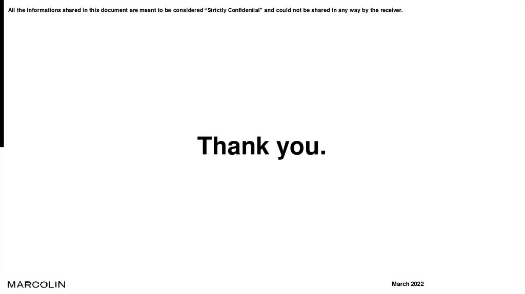 All the informations shared in this document are meant to be considered “Strictly Confidential” and could not be shared in any way by the receiver.Thank you.