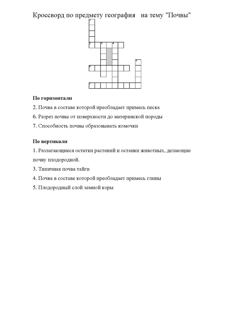Кроссворд по предмету география на тему "Почвы"По горизонтали