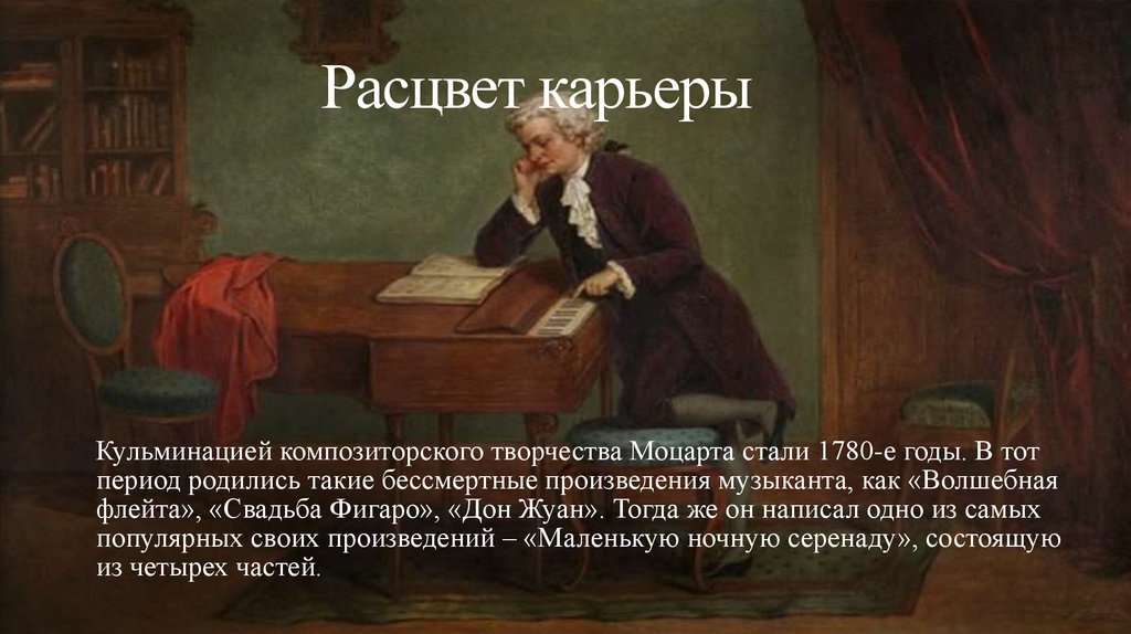 Расцвет карьерыКульминацией композиторского творчества Моцарта стали 1780-е годы. В тот