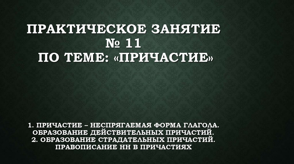 1. ПРИЧАСТИЕ – НЕСПРЯГАЕМАЯ ФОРМА ГЛАГОЛА.