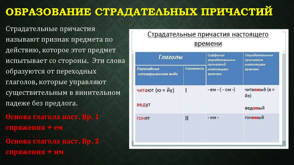 ОБРАЗОВАНИЕ СТРАДАТЕЛЬНЫХ ПРИЧАСТИЙСтрадательные причастия