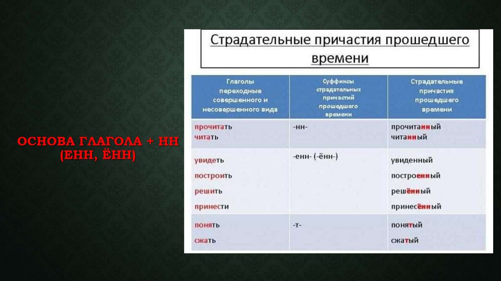 ОСНОВА ГЛАГОЛА + НН(ЕНН, ЁНН)