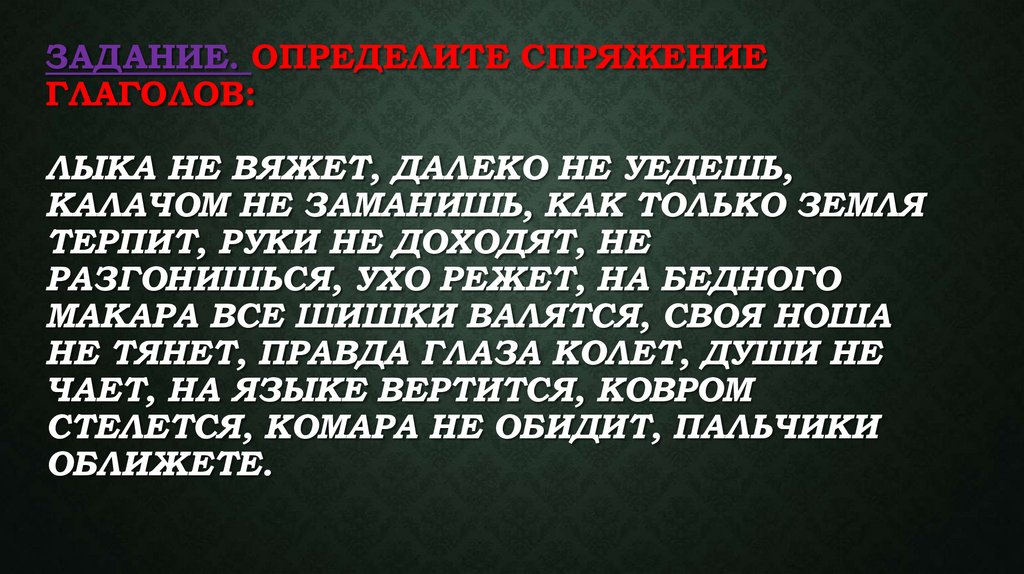 ЗАДАНИЕ. ОПРЕДЕЛИТЕ СПРЯЖЕНИЕГЛАГОЛОВ: