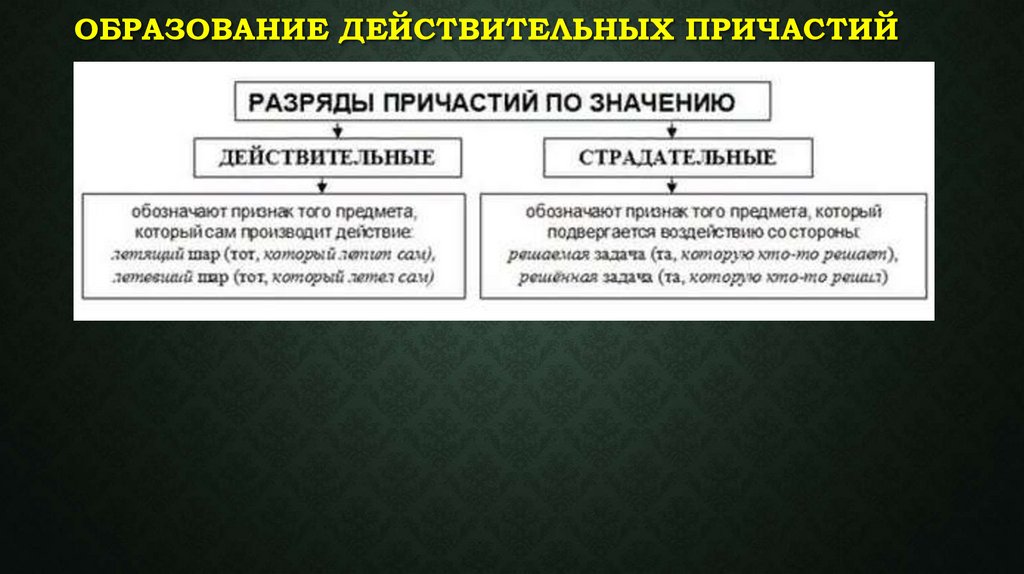 ОБРАЗОВАНИЕ ДЕЙСТВИТЕЛЬНЫХ ПРИЧАСТИЙ.