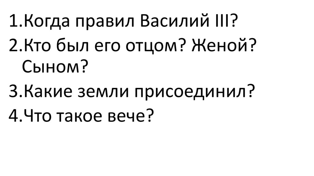 1.Когда правил Василий III?2.Кто был его отцом? Женой?