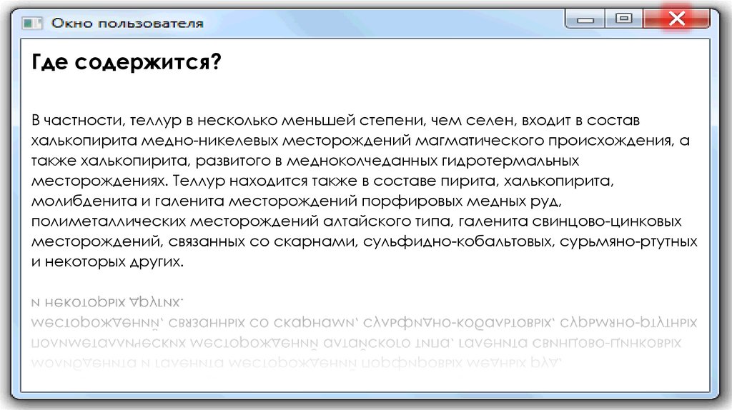 месторождениях. Теллур находится также в составе пирита, халькопирита,