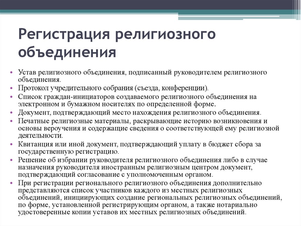 • Документ, подтверждающий место нахождения религиозного объединения.