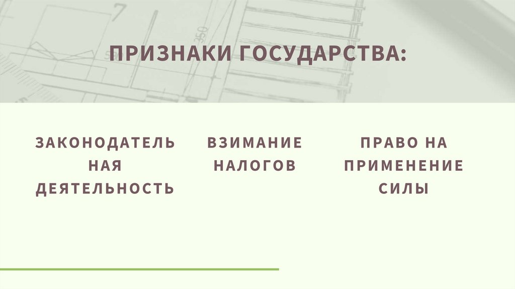 ПРИЗНАКИ ГОСУДАРСТВА:ЗАКОНОДАТЕЛЬ
