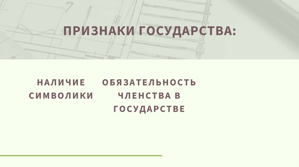 ПРИЗНАКИ ГОСУДАРСТВА:НАЛИЧИЕ