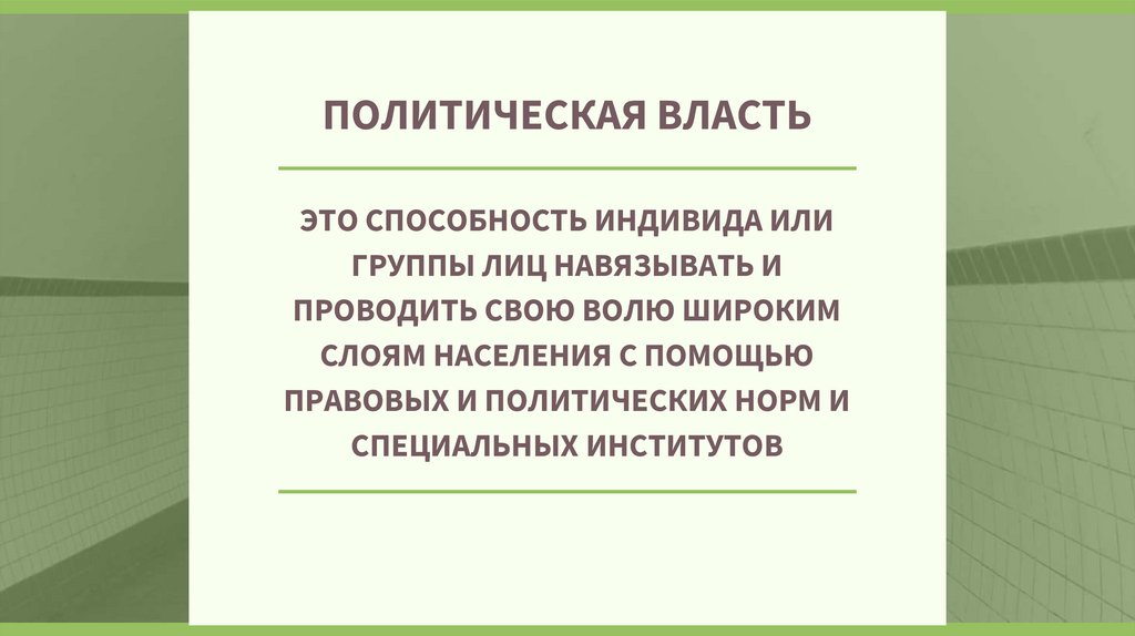 ПОЛИТИЧЕСКАЯ ВЛАСТЬЭТО СПОСОБНОСТЬ ИНДИВИДА ИЛИ