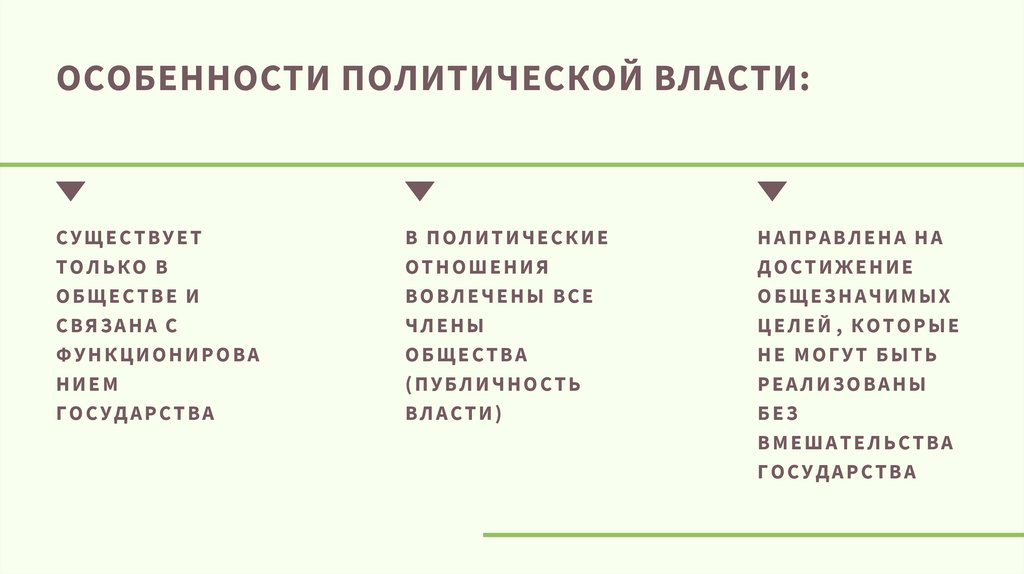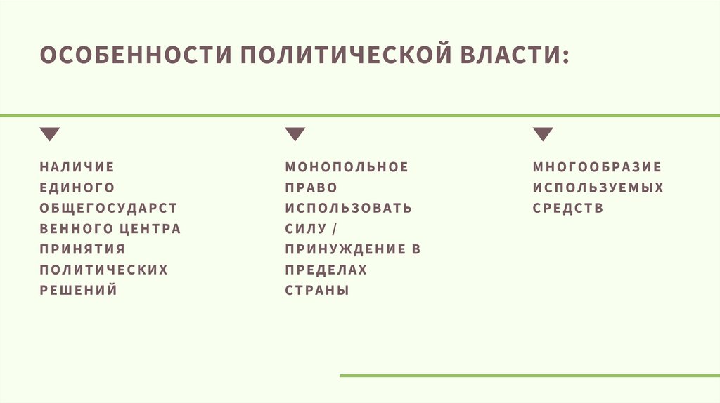 ОСОБЕННОСТИ ПОЛИТИЧЕСКОЙ ВЛАСТИ:НАЛИЧИЕ