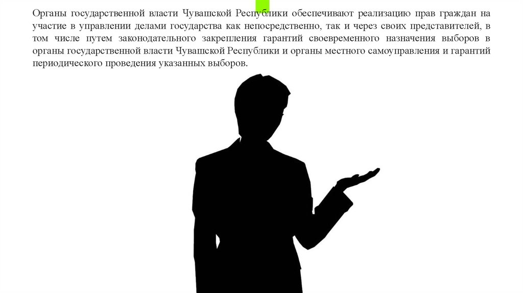 Органы государственной власти Чувашской Республики обеспечивают реализацию прав граждан научастие в управлении делами государства как непосредственно, так и через своих представителей, в