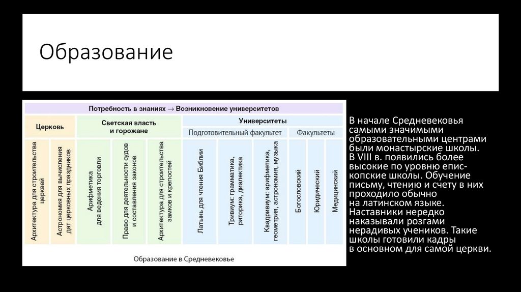 Образование• В начале Средневековья
