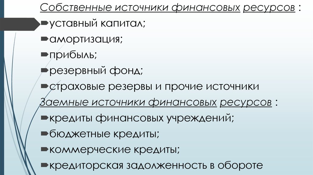 9. 3. Источники формирования финансовых ресурсов предприятия
