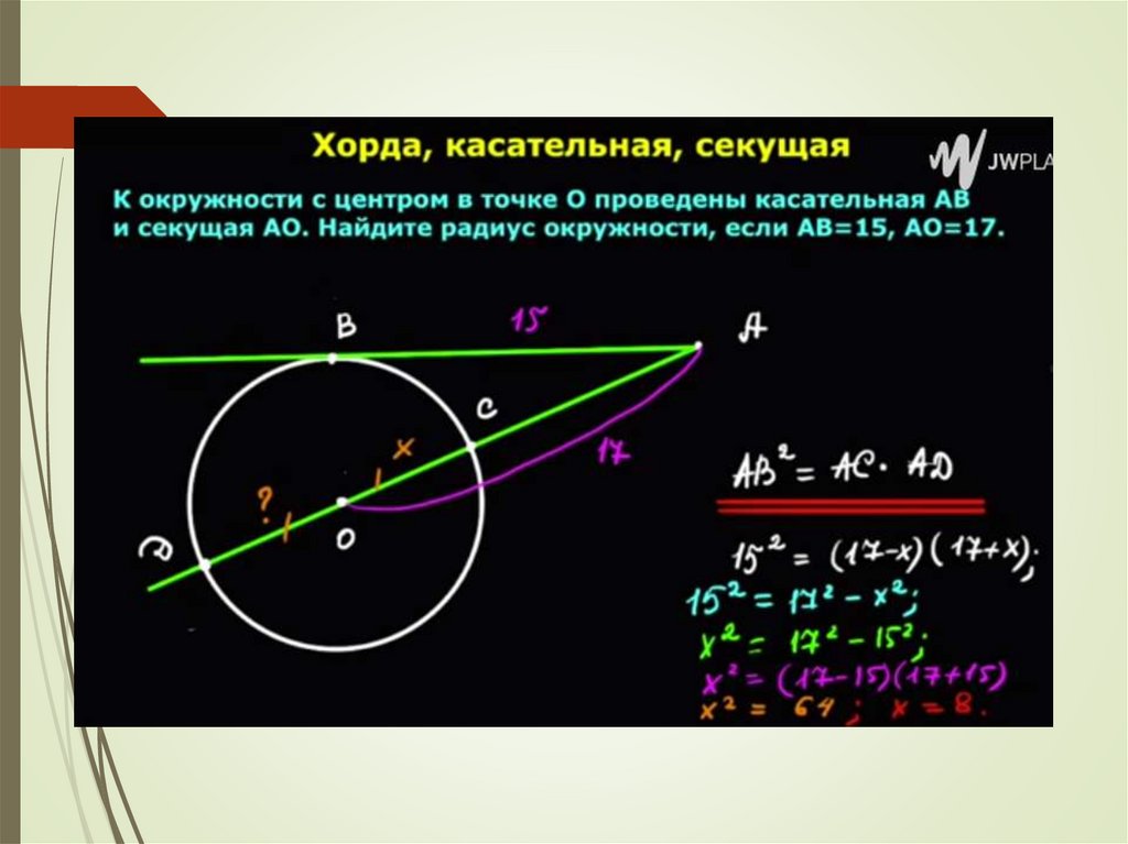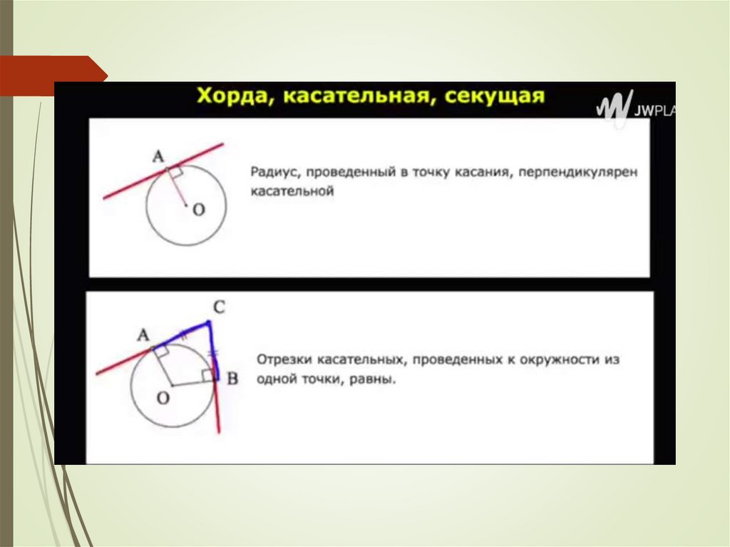 Повторение теории: окружность, касательная, касательные и хорды, касательные и секущие