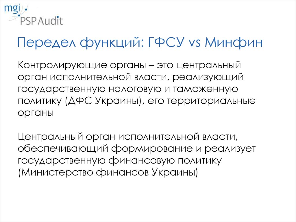 Передел функций: ГФСУ vs МинфинКонтролирующие органы – это центральный