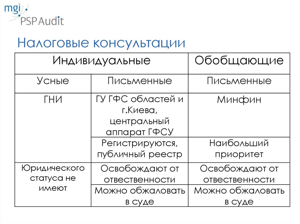 • обобщающие налоговые консультации