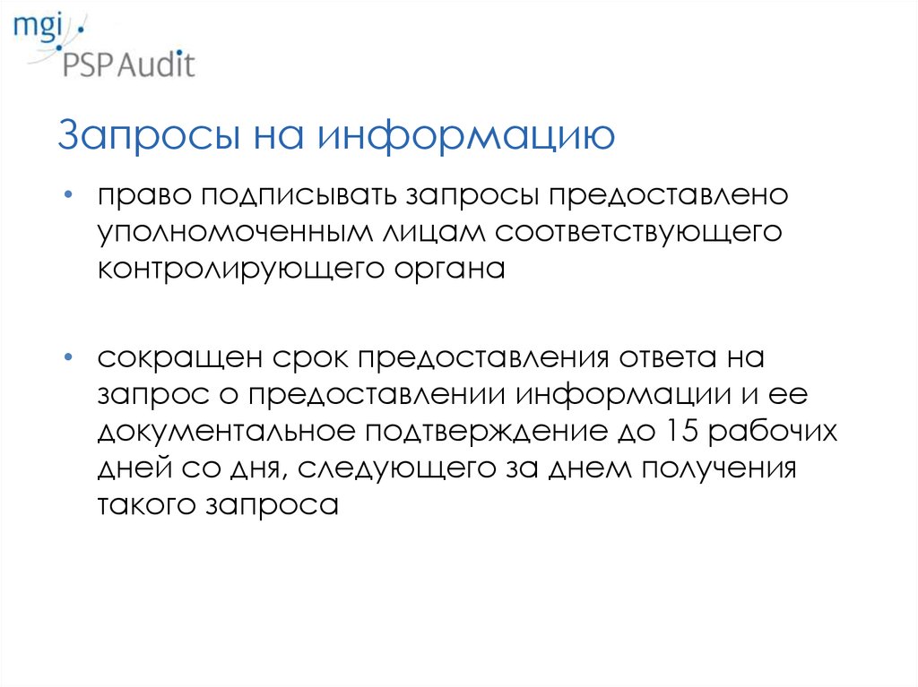 Запросы на информацию• право подписывать запросы предоставлено