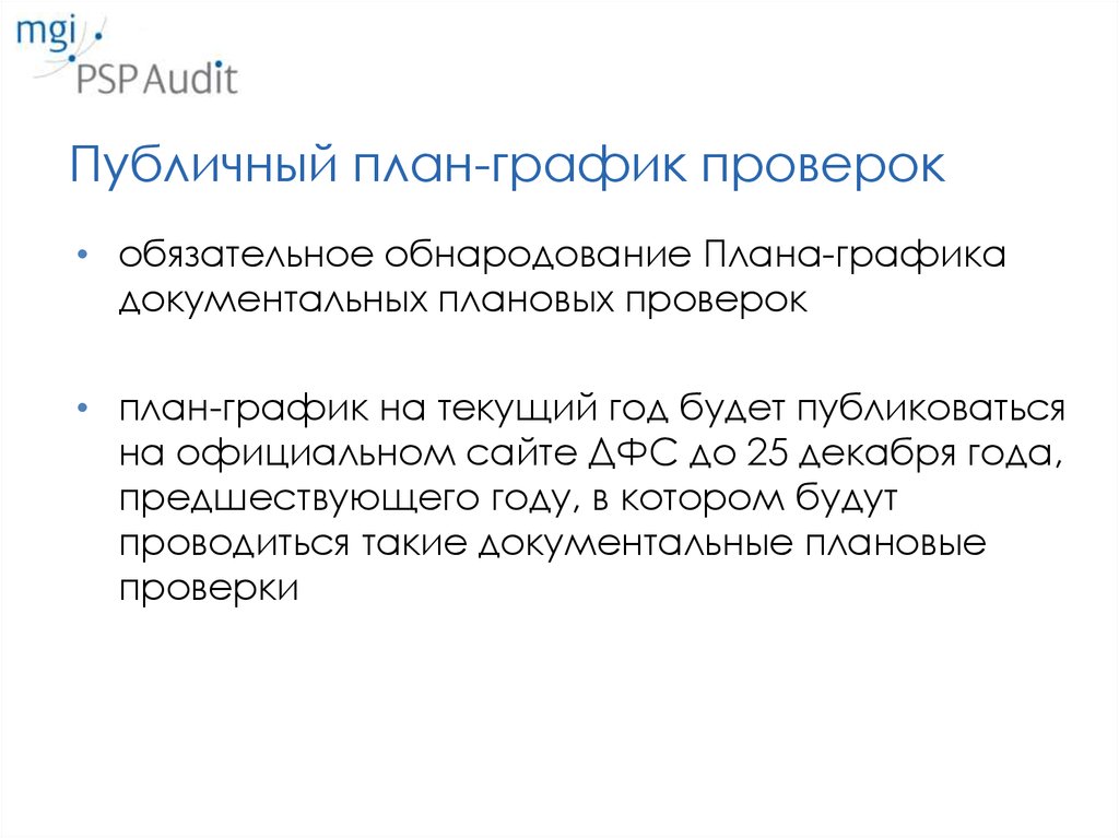 Публичный план-график проверок• обязательное обнародование Плана-графика