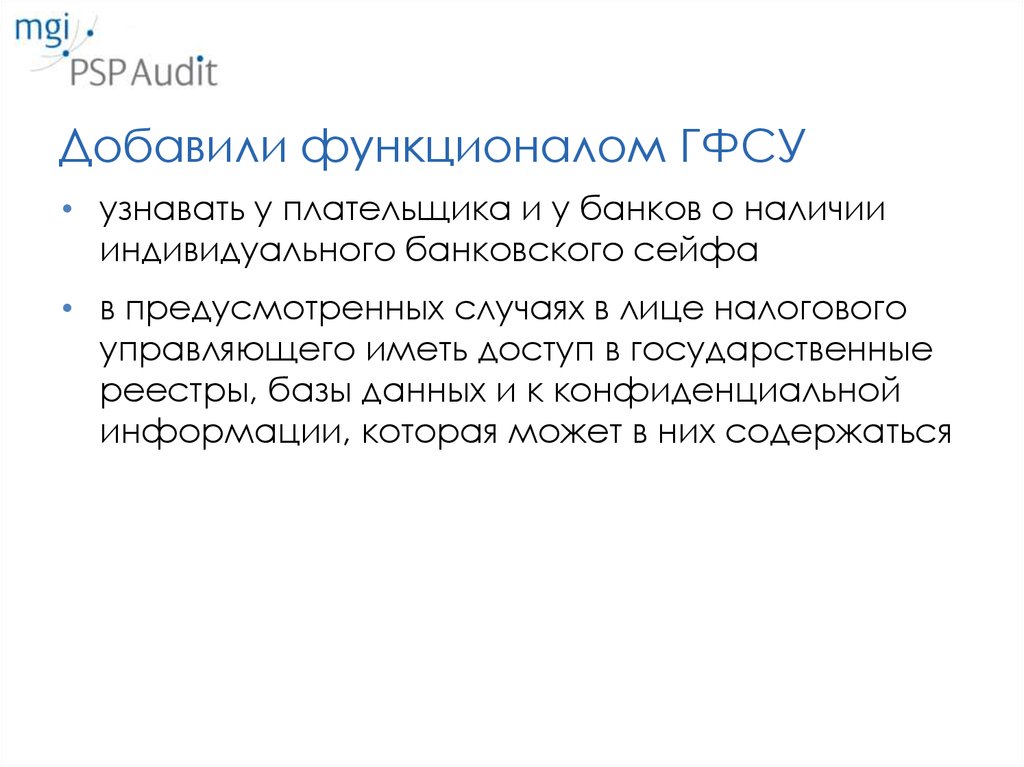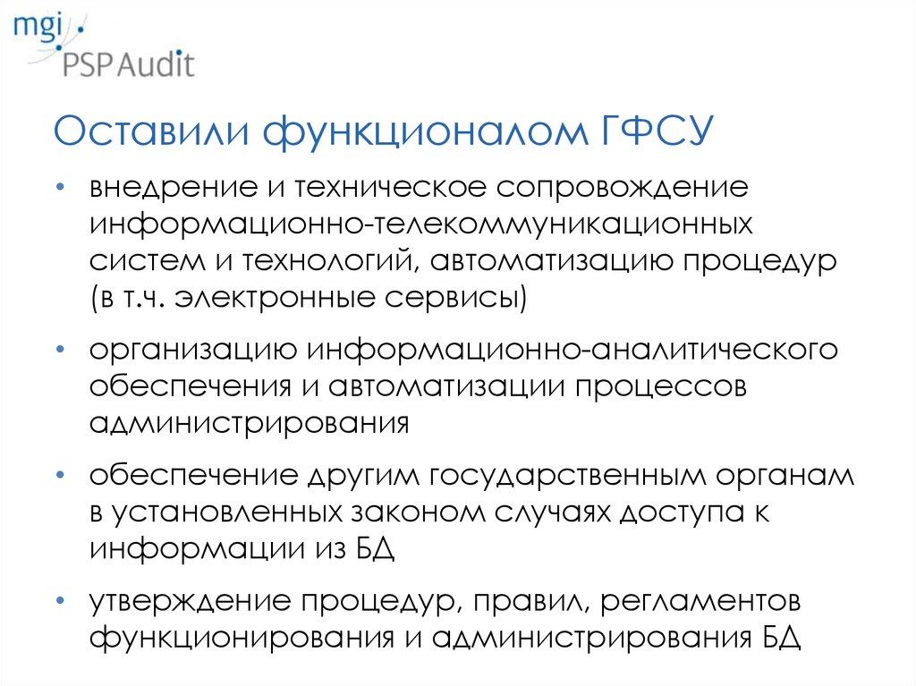 Оставили функционалом ГФСУ• внедрение и техническое сопровождение