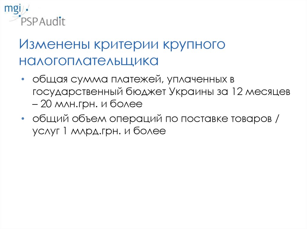 Изменены критерии крупногоналогоплательщика