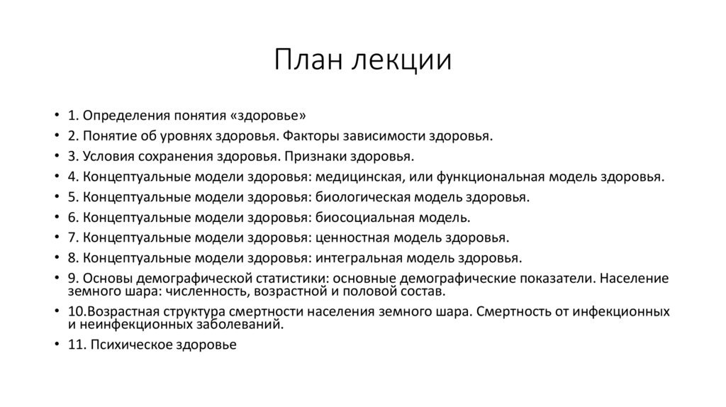 • 4. Концептуальные модели здоровья: медицинская, или функциональная модель здоровья.