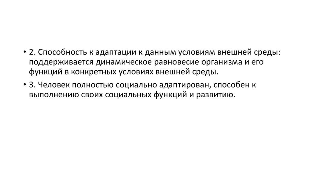 • 2. Способность к адаптации к данным условиям внешней среды:поддерживается динамическое равновесие организма и его
